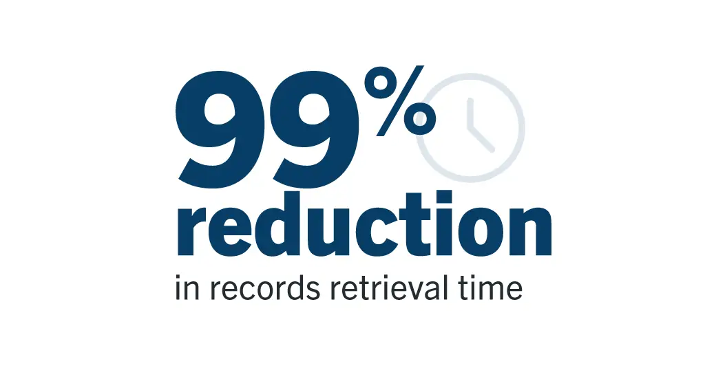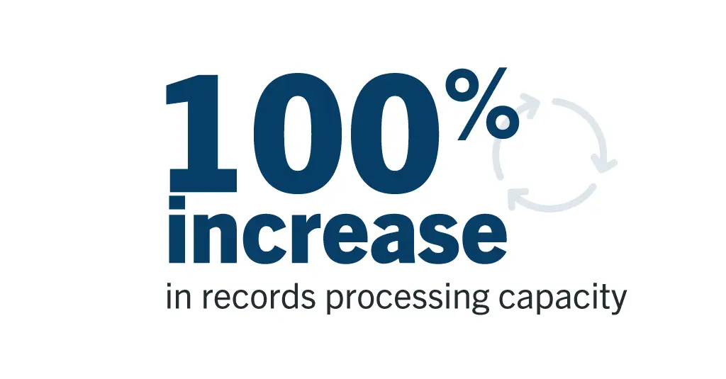 Today, staff can navigate the system and retrieve documentation promptly. What previously took days now takes minutes. The organization’s records processing capacity has also doubled. Staff can now process more than 700 claim, panel, and surcharge records per week. And with standardized records management practices, the organization has regained control over its information, mitigating risk of lost files or noncompliance.