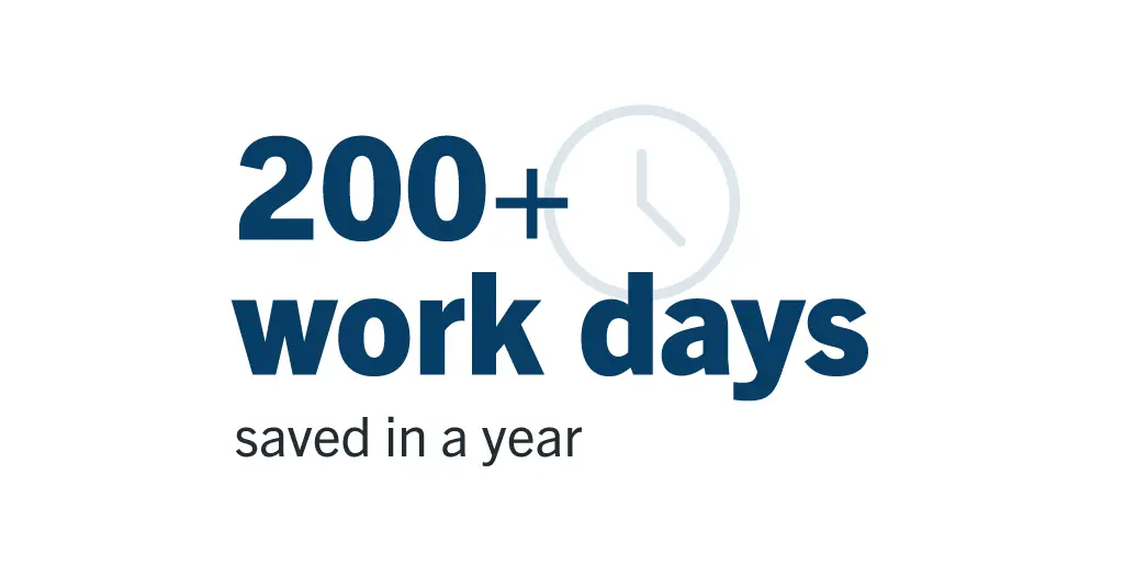 The EASY Claims system also improved the experience for staff processing customer submissions. Originally, acknowledging a newly submitted claim could take two days. Today, it takes fewer than 15 minutes. This translates to a savings of more than 200 work days a year for the claims processing staff organization-wide. The property claims management team specifically was able to save 57 days a year through the EASY Claims system.