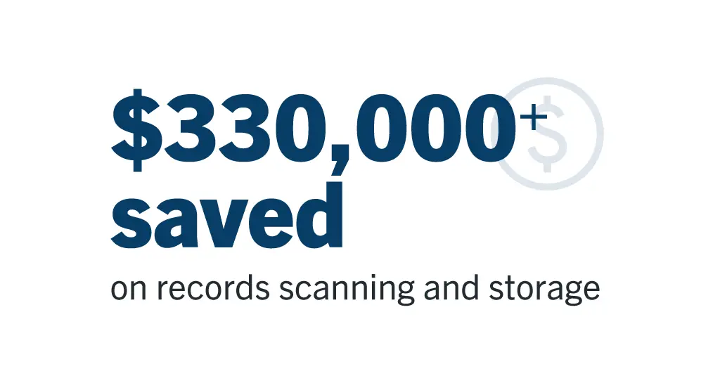 - Cost Savings: Over $330,000 saved by implementing Laserfiche instead of outsourcing records scanning and storage. Paper usage has dropped by 40%.
