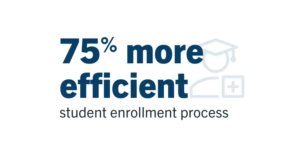 - Expedited Processes: Student enrollment processing time reduced from two hours to less than 30 minutes, with all enrollment forms available district-wide within 24 hours. Student file transfers to state agencies and other districts was reduced from 45 minutes to just two. And hiring new employees, which once took a month, can now be completed within a day.
